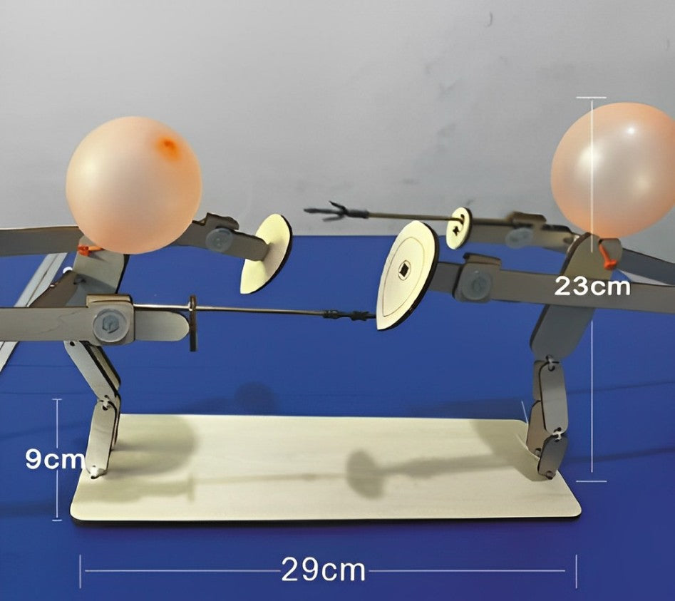 • Controle Articulado: Cada jogador controla um boneco de madeira através de alavancas, movimentando os braços para atacar e defender.