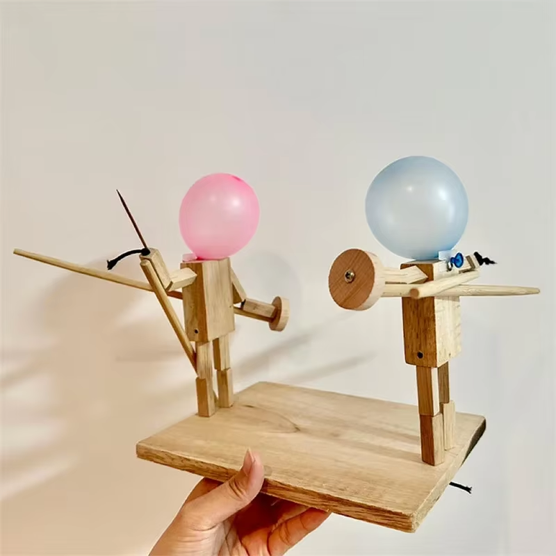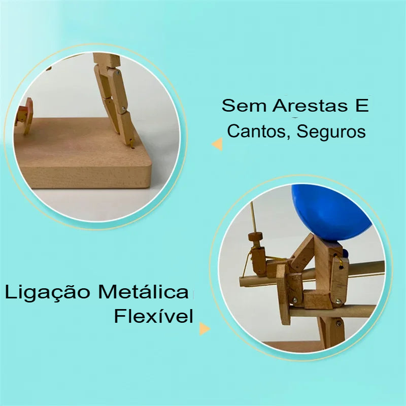 • 2 bonecos de madeira com articulações e alavancas de controle.