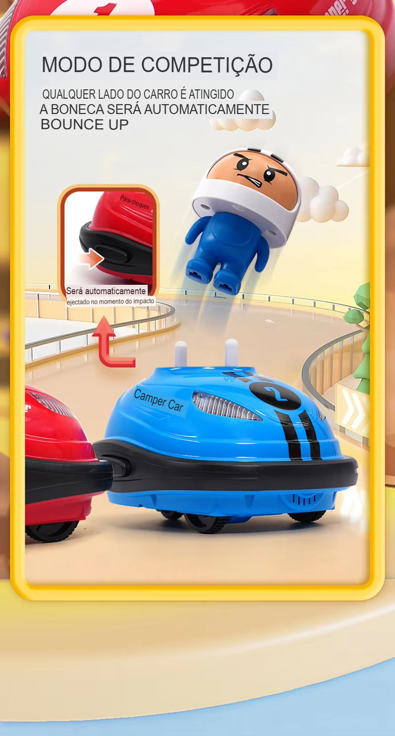 • Quando os carrinhos colidem, o boneco que está a pilotar salta!