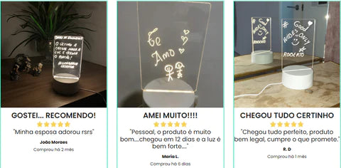 É isso mesmo, ao comprar a Luminária Mágica de Recados Iluminados, você estará participando automaticamente da nossa garantia de satisfação. Você terá 7 dias, a partir da data da entrega, para testar o produto e verificar sua qualidade. Se você não gostar do resultado ou achar que ele não é para você, basta nos escrever um e-mail que devolveremos 100% do valor a você, NA MESMO HORA!