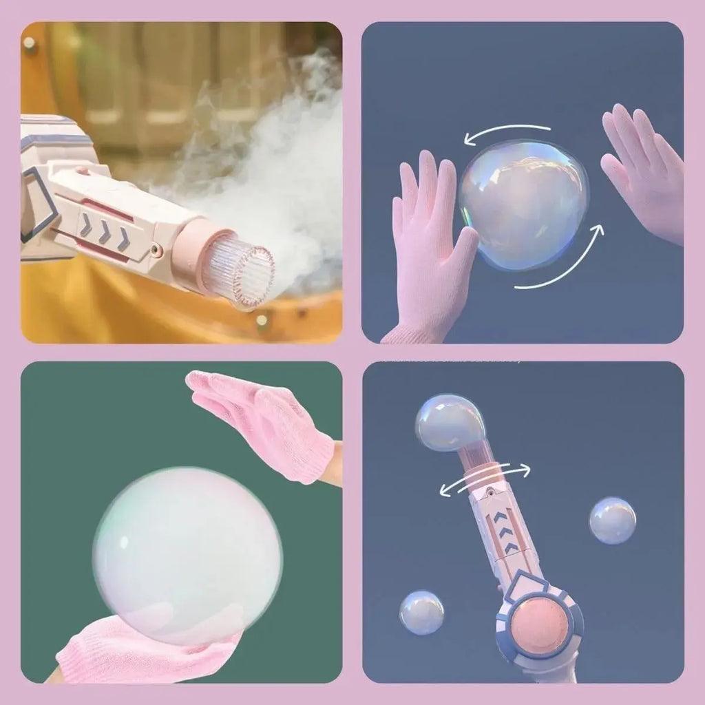 • Fácil de Usar: Com um design intuitivo e simples, basta apertar um botão para liberar uma nuvem de bolhas mágicas.