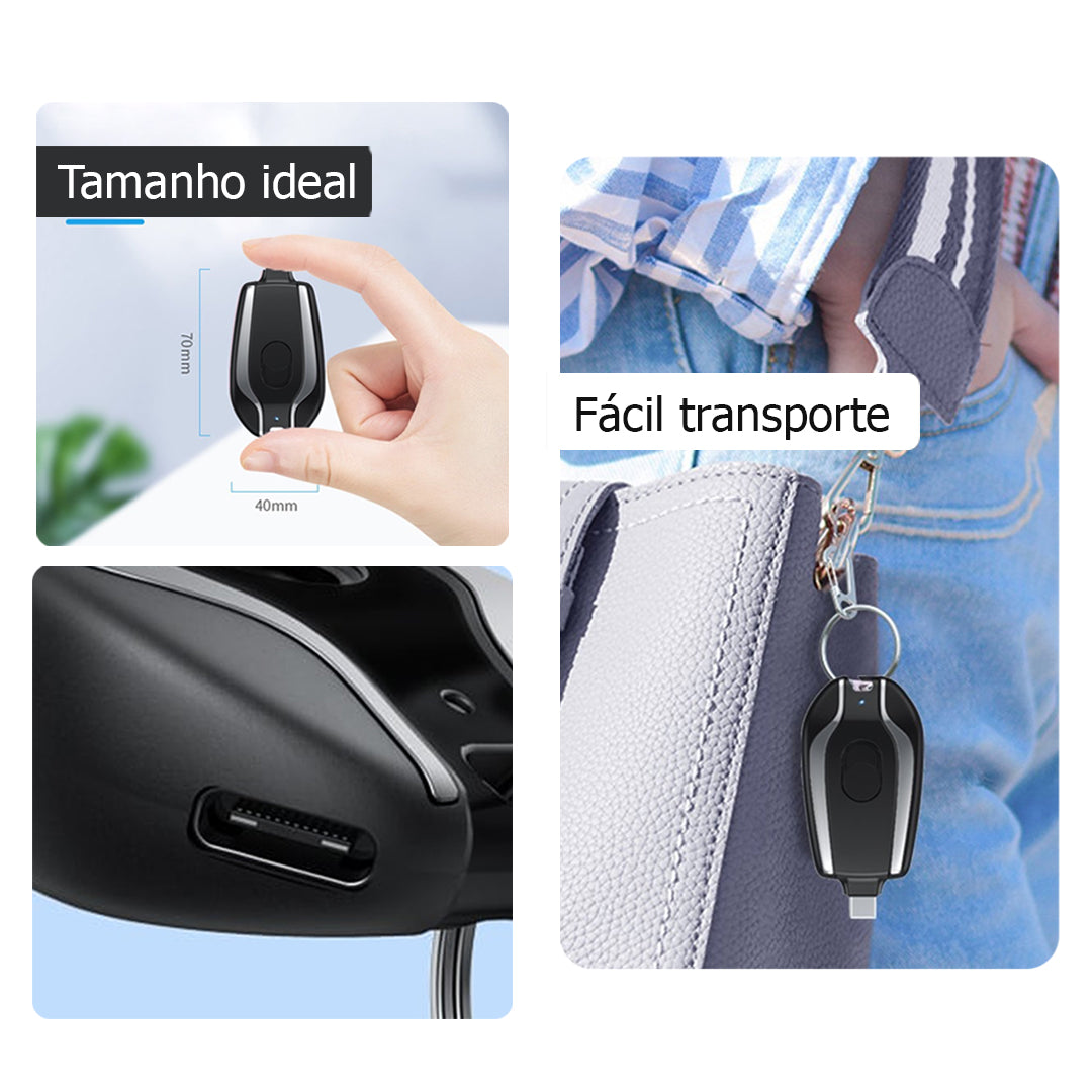 Energia a Qualquer Hora e Lugar com o Mini Carregador Chaveiro Portátil!