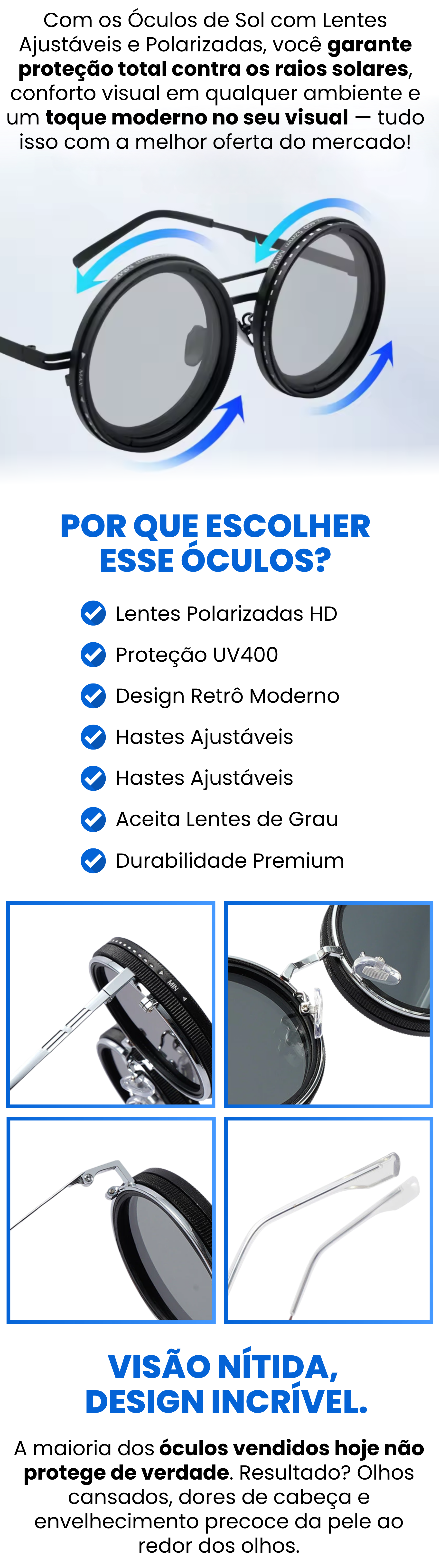 Óculos de Sol Polarizado Multicor 6 em 1 + Estojo de Brinde